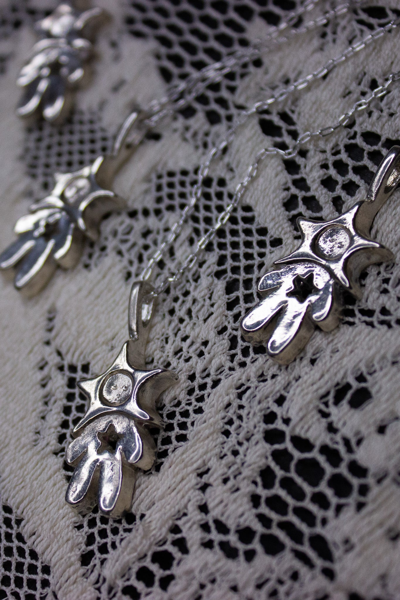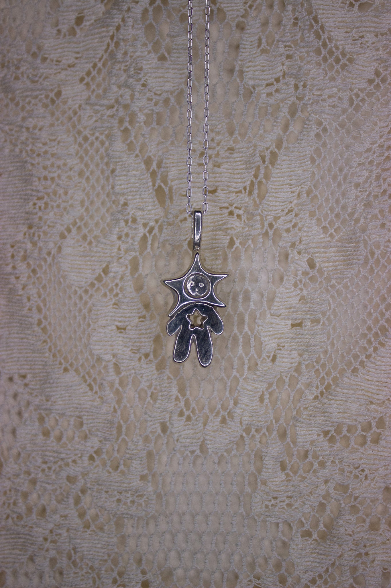 Solid, hand carved 925 silver pendant with cut out star detail. Includes 925 sterling silver chain.